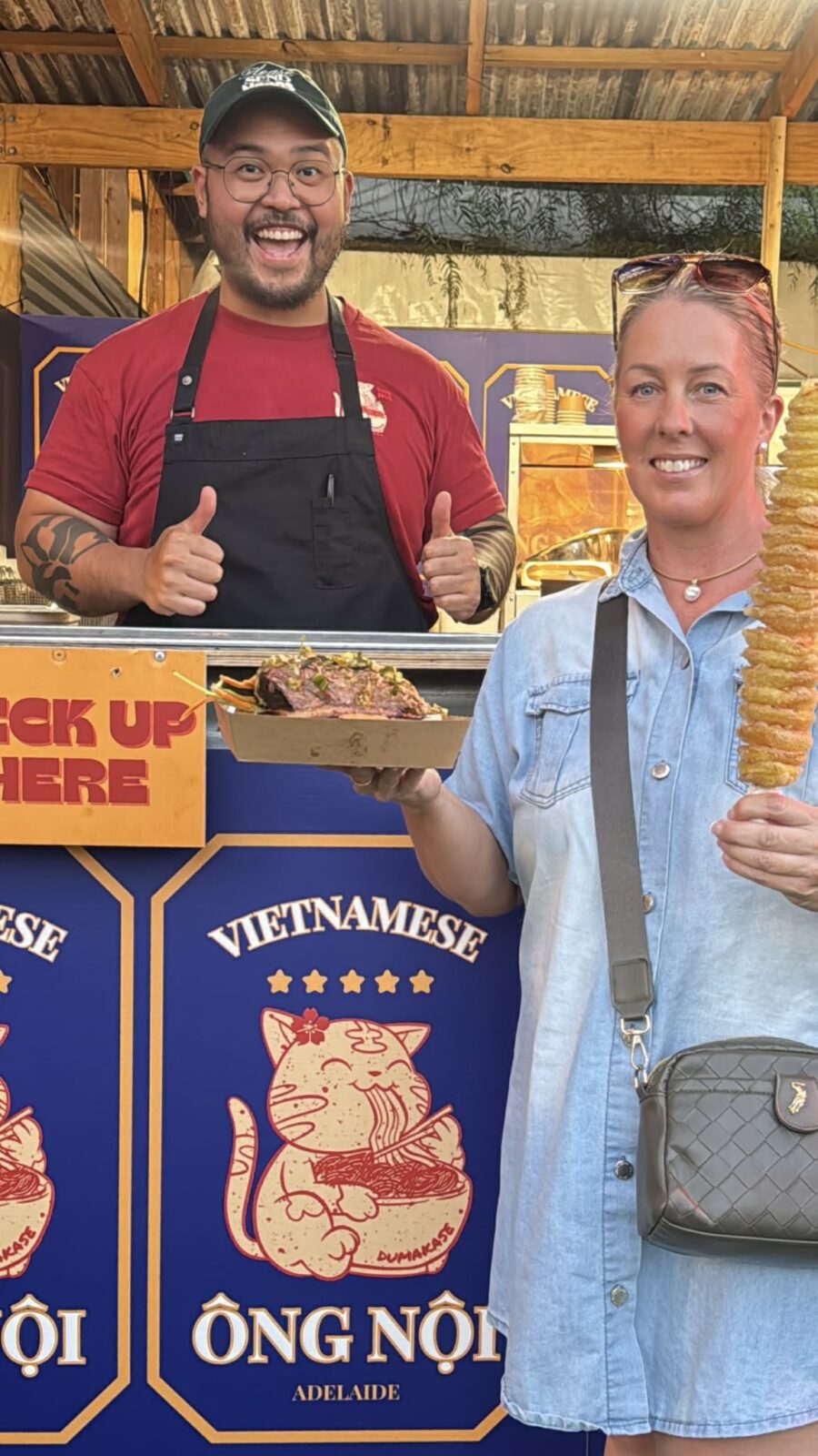 Offering Vietnamese street food and festival favourites, including bun bowls, spring rolls, whole coconuts, incredible Vietnamese Iced coffee the star of the show, loaded banh mi. The absolute stand out here? Chip on a stick with the most insane seasoning (you’re going to steal this from the kids and have to return for more, trust us) and the epic slow cooked beef short rib bahn mi. A whole short rib, bone in (don’t worry it slides out as the meat falls off the bone and into the crunchy soft vietnaese roll. Drool. Best Fringe food find of all time. Big call. Standing by it.