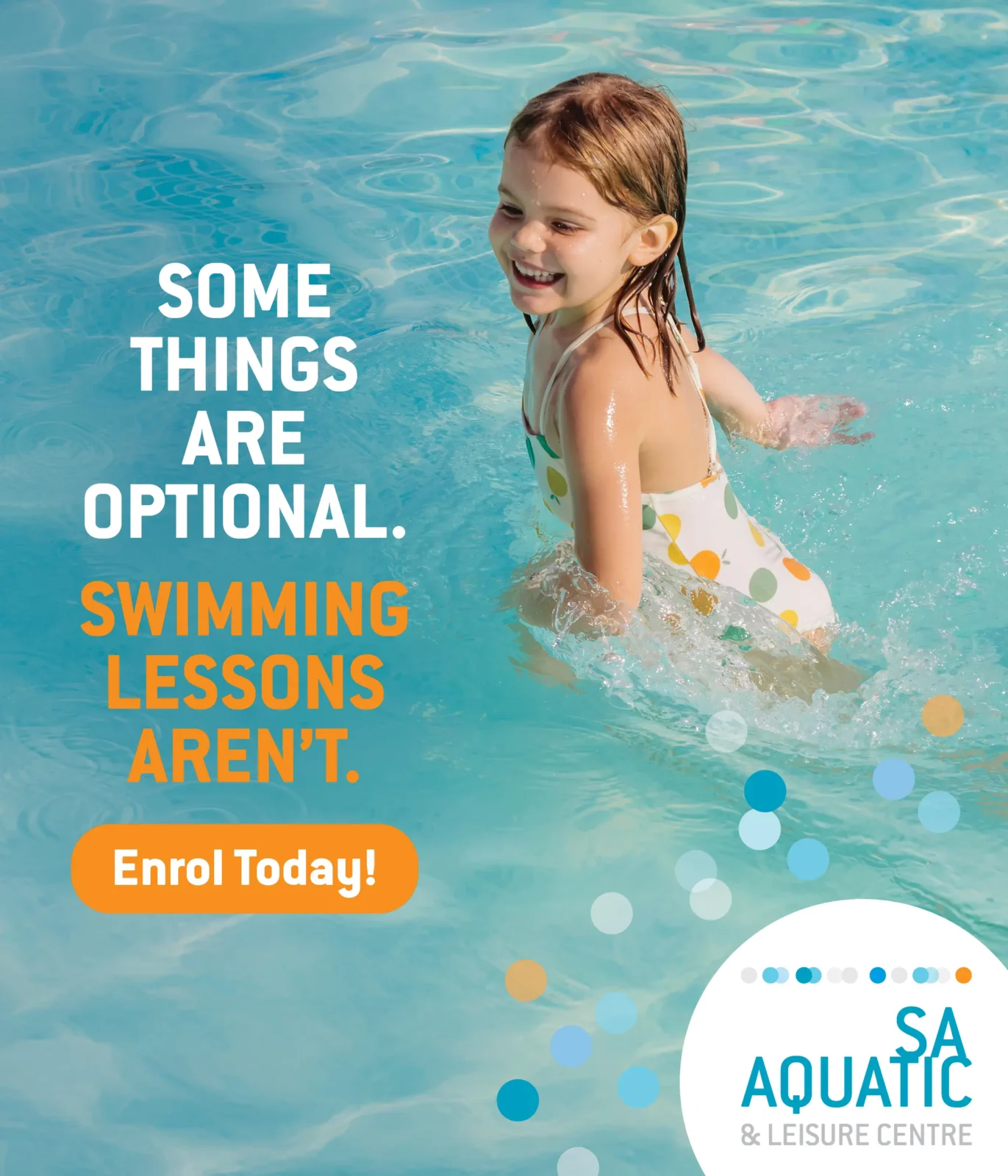 Learning to swim is one of the best gifts you can give your child. It builds confidence in the water that lasts a lifetime. At the SA Aquatic & Leisure Centre, lessons focus on safety, skill, and fun. They help every child develop a real love for the water.