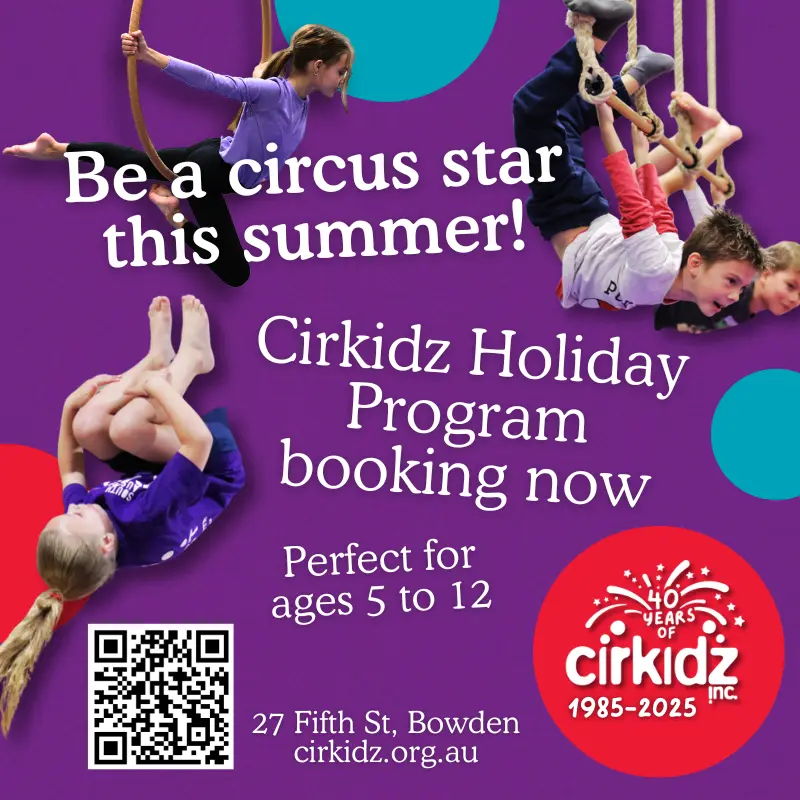Cirkidz is rolling out its Summer Holiday Program for 2025/2026, with half-day and full-day circus sessions designed for kids aged 5–12 at the SA Circus Centre in Bowden.