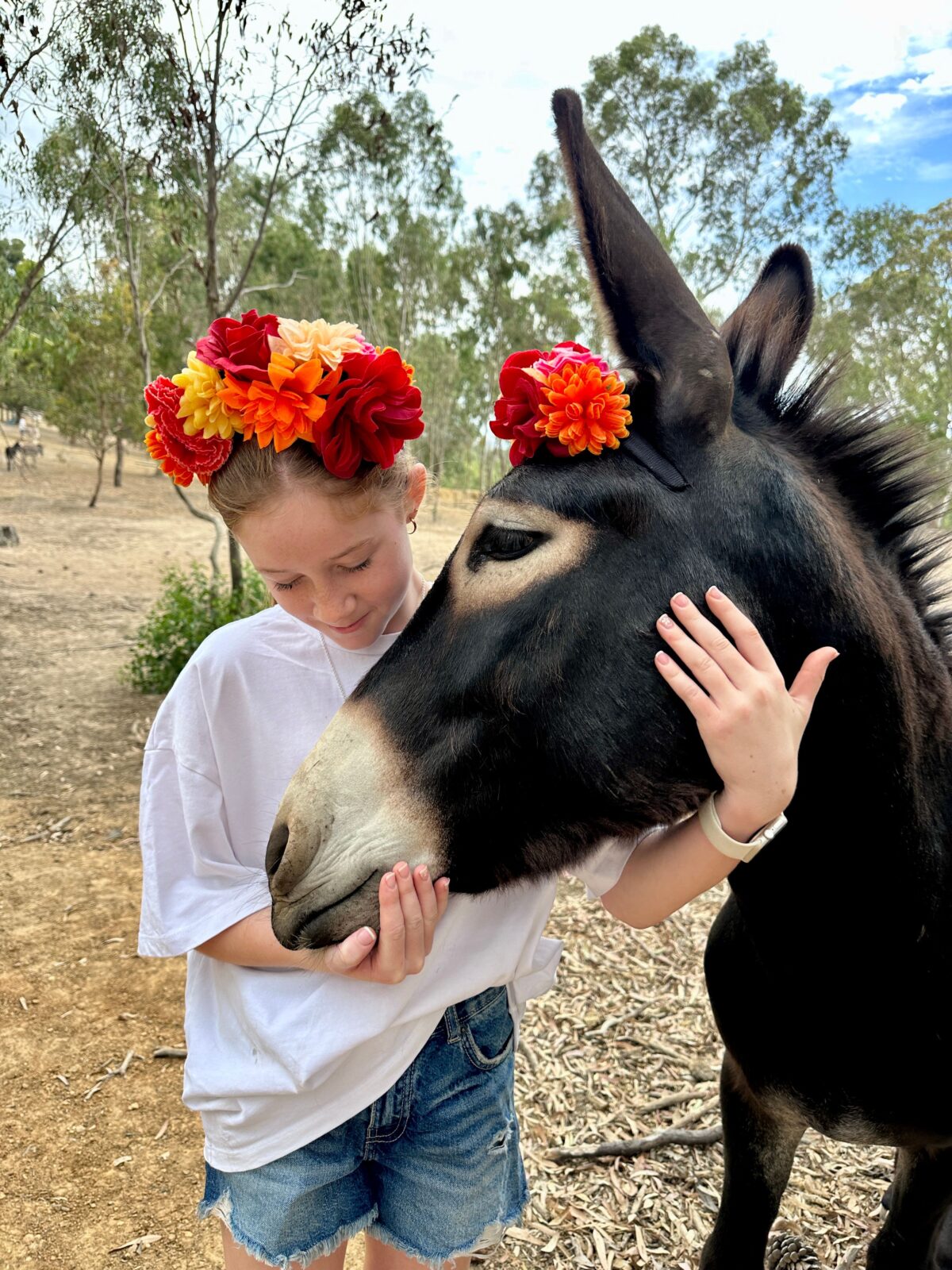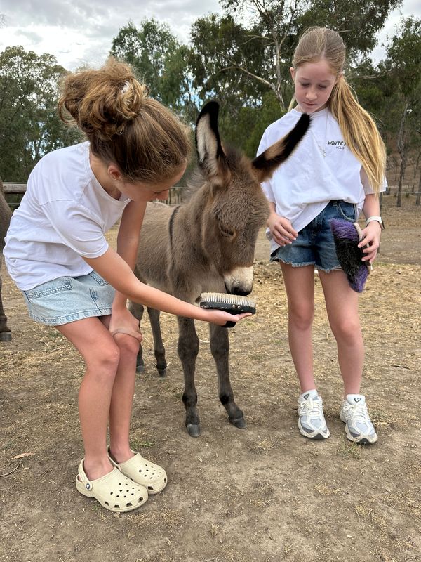 Some other highlights for all of us were walking with the donkeys, watching them play and interact with each other and also the opportunity to snap the cutest photos of them wearing headbands (yes, they genuinely seemed to love it!) Then there was Sunny, a three-week-old baby donkey, who completely stole our hearts. Fluffy, fuzzy and impossibly cute, Sunny was a huge hit and made this Adelaide Hills animal experience feel even more unforgettable.