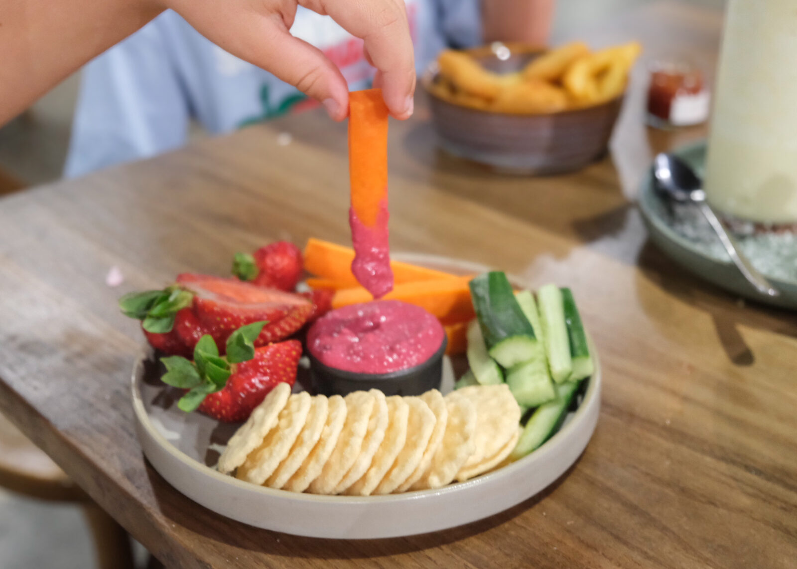 The kids’ menu gets a big thumbs-up from us too. With four options, including a healthy snack that lets little grazers nibble on veggie sticks and fruit, it’s a winner for picky eaters. Nuggets are loved here, sure, but that little jar of Beerenberg tomato sauce with every dish? Chef’s kiss.