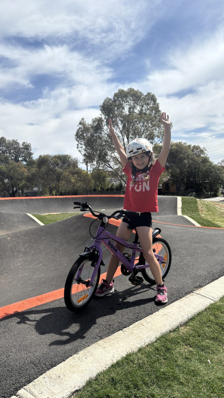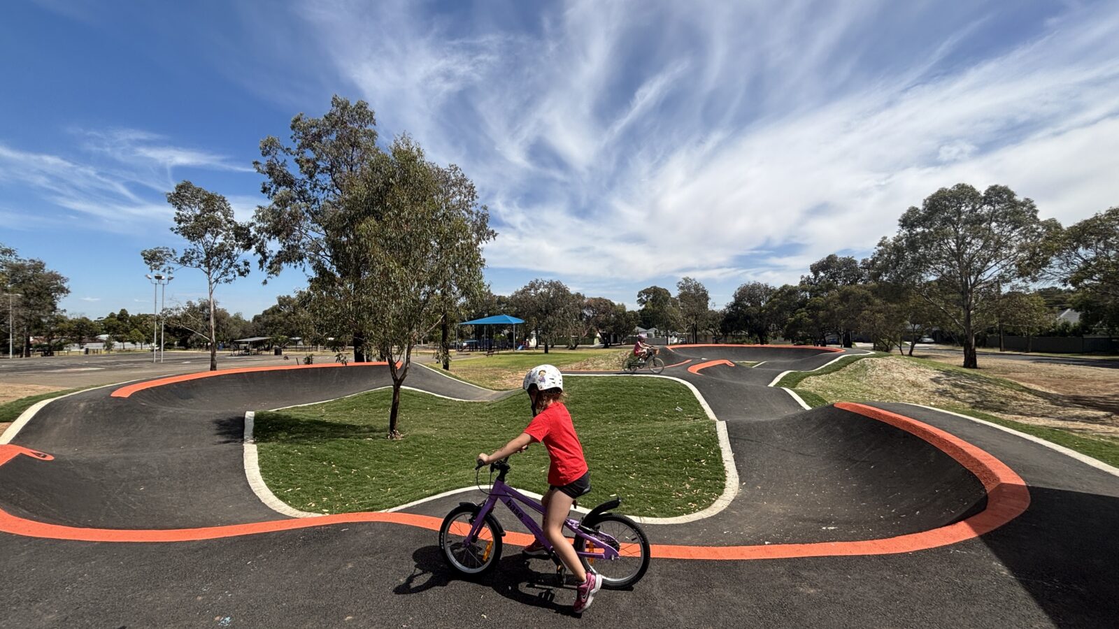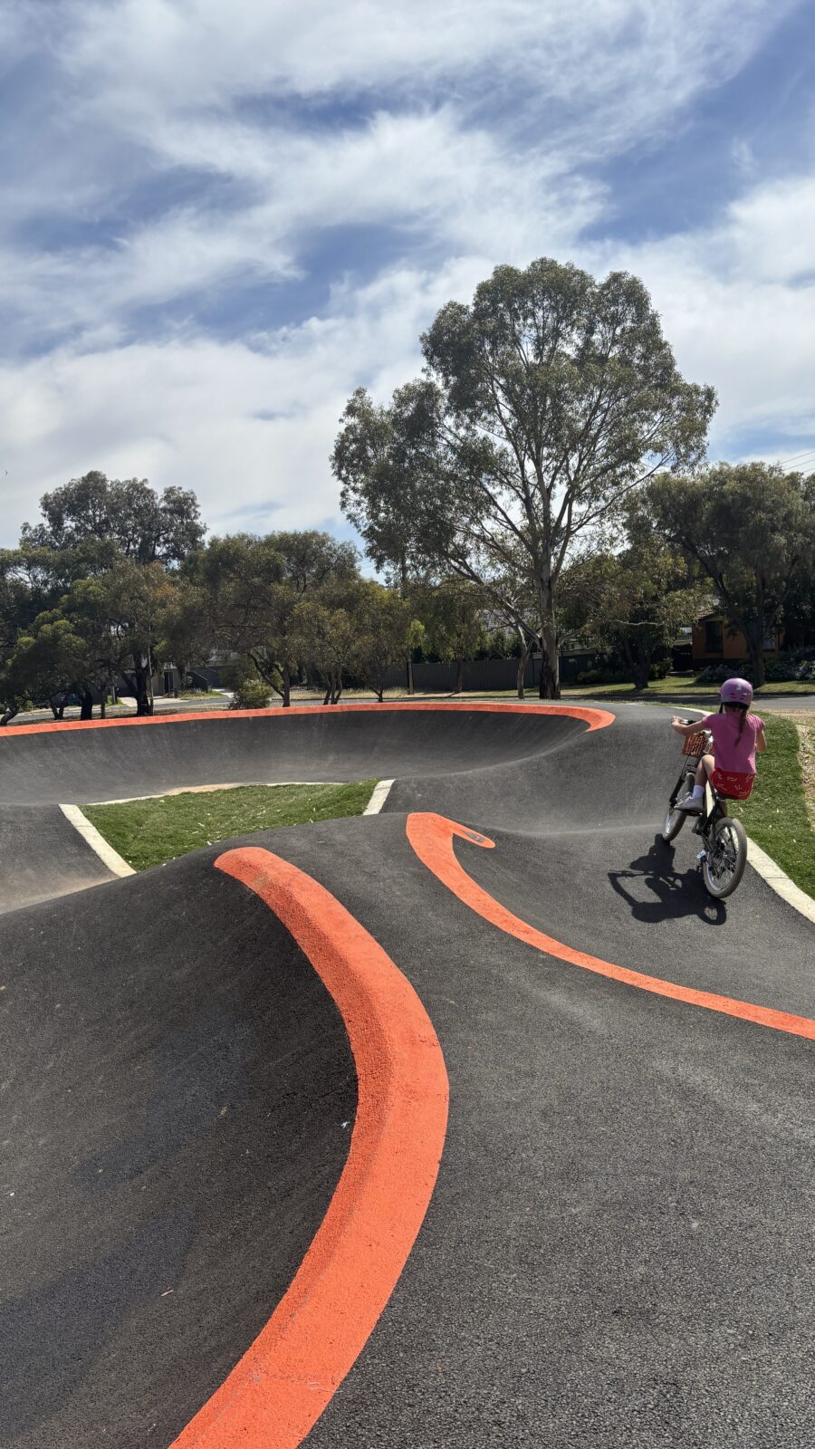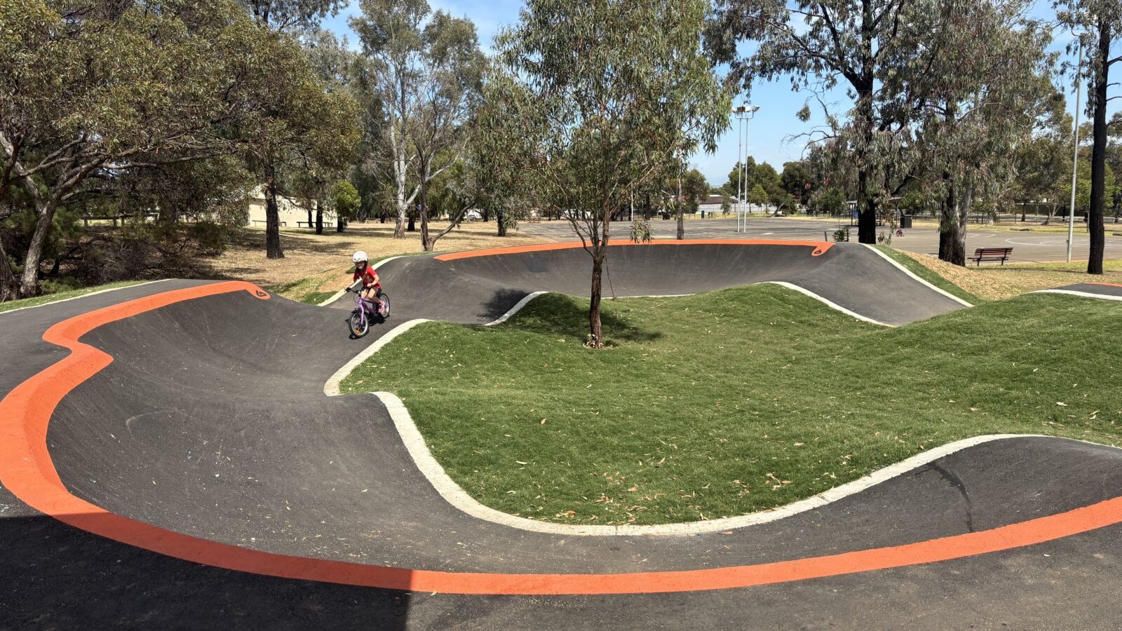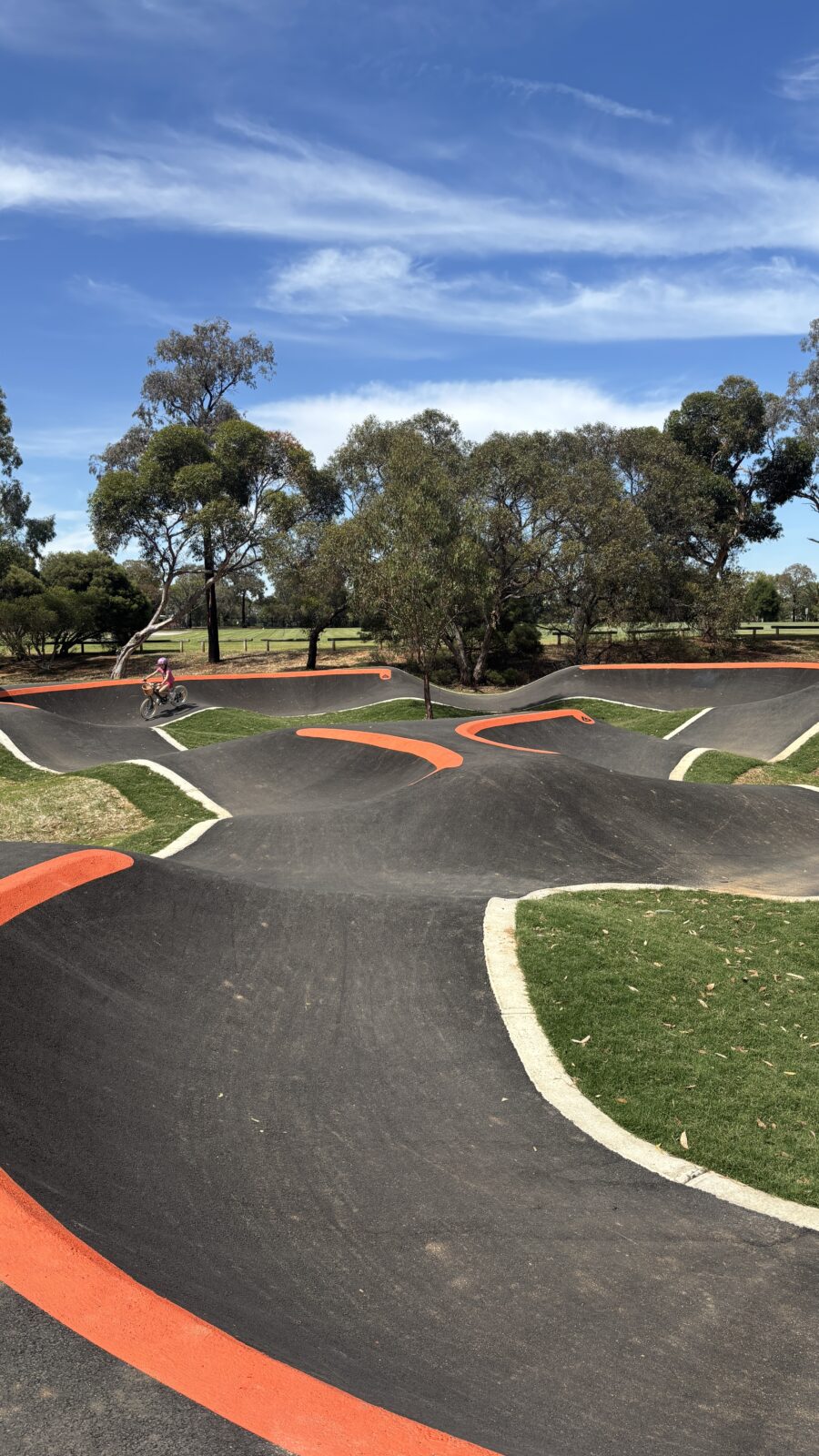 Golding Oval Reserve BMX Pump Track is one of four new tracks developed and built in 2025/2026 by the City of Salisbury Council. This track officially opened in December of 2025 and our 5 year old and 8 year old KiA kids were excited to check it out as soon as they could. This asphalt track includes humps and berms creating a loop suitable for all ages and experiences. My 5 year old was confident attempting this track so I would ultimately recommend this track would be suitable for children ages 4 and above. Perfect for balance bikes, bikes, BMX;s and scooters. We had an absolute ball and stayed longer than we had actually anticipated. There is one sheltered picnic table for parents to sit and supervise however there is no shade at all on the track itself.