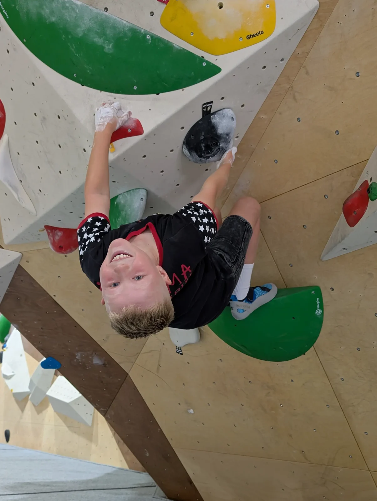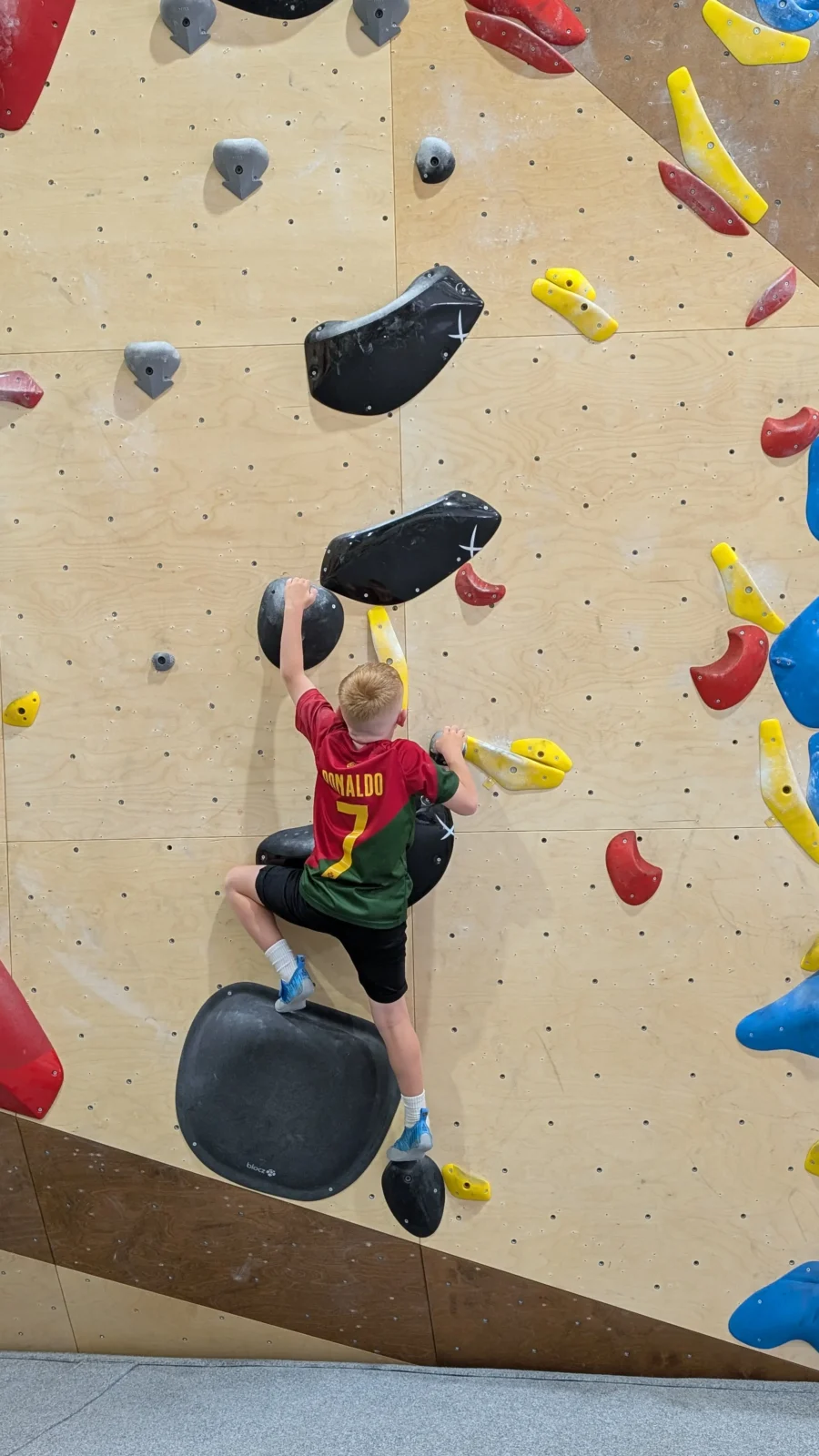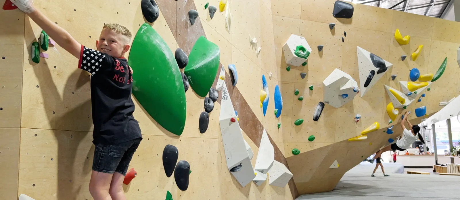 Bouldering is a powerful way to support kids’ physical and mental wellbeing. It builds strength, balance, coordination and mobility, while also encouraging problem-solving, focus and resilience. Each climb is like a puzzle, helping kids learn to try different approaches, manage frustration and build confidence through progress. Unlike many traditional sports, climbing allows children to move at their own pace, making it especially appealing for kids who don’t always connect with structured team environments.