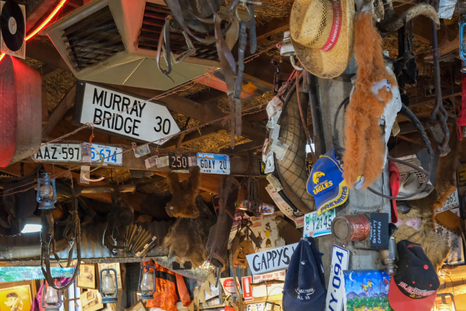 Tucked away on the Sturt Highway in Monash just near Berri, this Riverland icon is one of those places you honestly have to see to believe. There’s old farm gear tucked between rusty signs, walls covered in Australiana, and a collection of curiosities that somehow all work together. It’s rustic, charming, a little chaotic and somehow completely perfect. A little overstimulating, but in the best possible way.