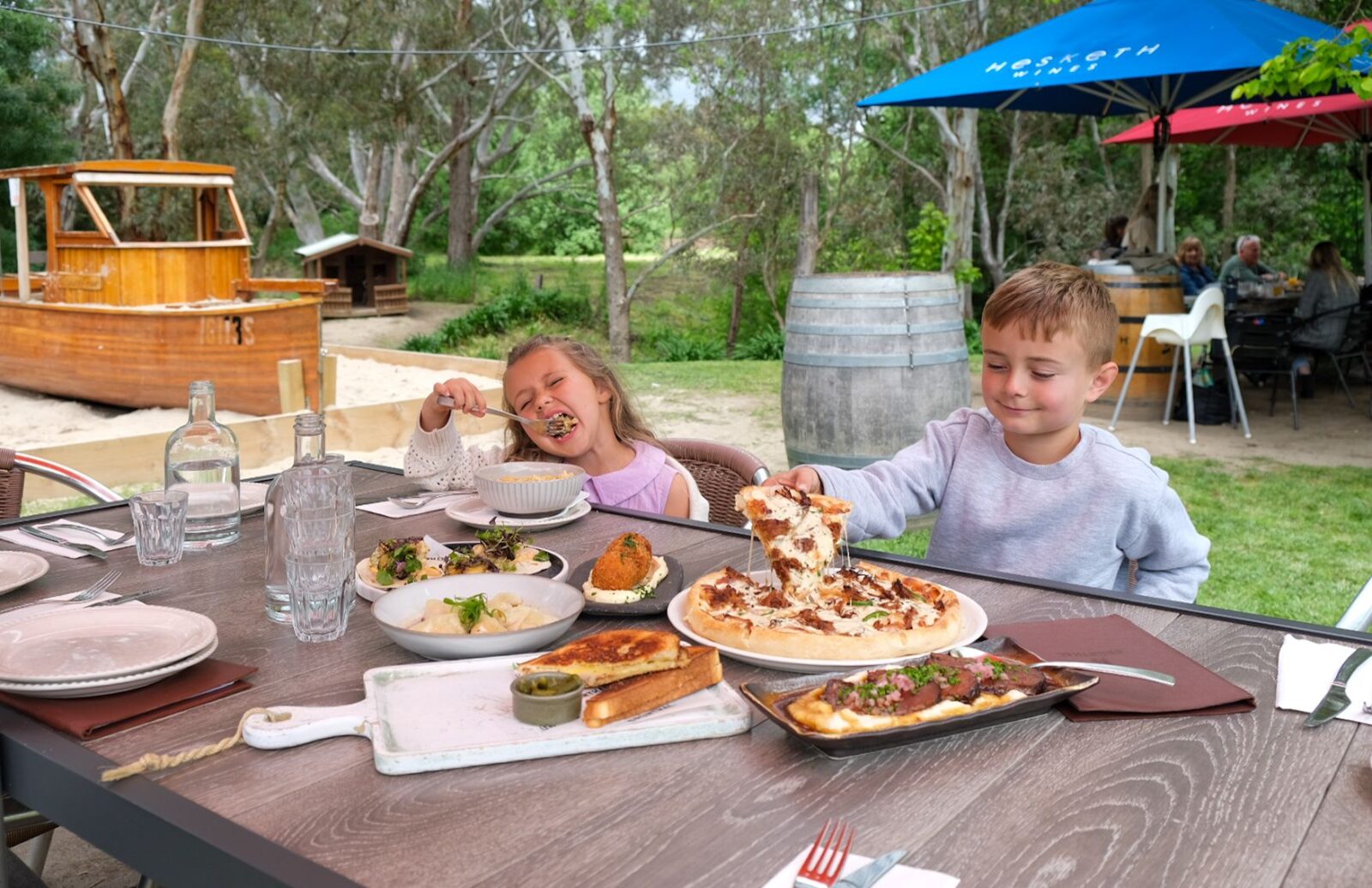 Ok so this pub is always impressive for families. With the Bridgewater playground just nextdoor, the actual ultimate is the nature play in and around the creek, right by the outdoor tables! Kids require a high level of supervision as always around water, and honestly, take a change of clothes or a towel if you are really going to let them get into it! think stepping stones, sticks and a running stream. Its a fabulous kids menu here and the new all weather pavillion is just something else in all seasons. Family friendly pubs dont come much better than this one.