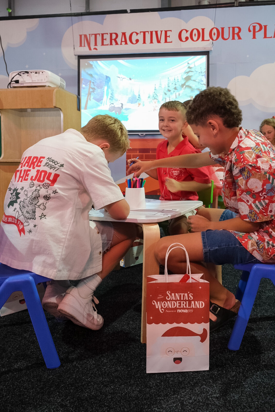 We arrive early as usual because the magic starts the second the doors open and the snow begins to fall. The kids dash straight to the first stop of the Christmas Activity Trail, which this year has ten stops, from crafts to letters to Santa to storytelling, with a few extra touches from South Australian brands. Our crew is determined to complete every stop. When you’re under nine, this is very serious business.