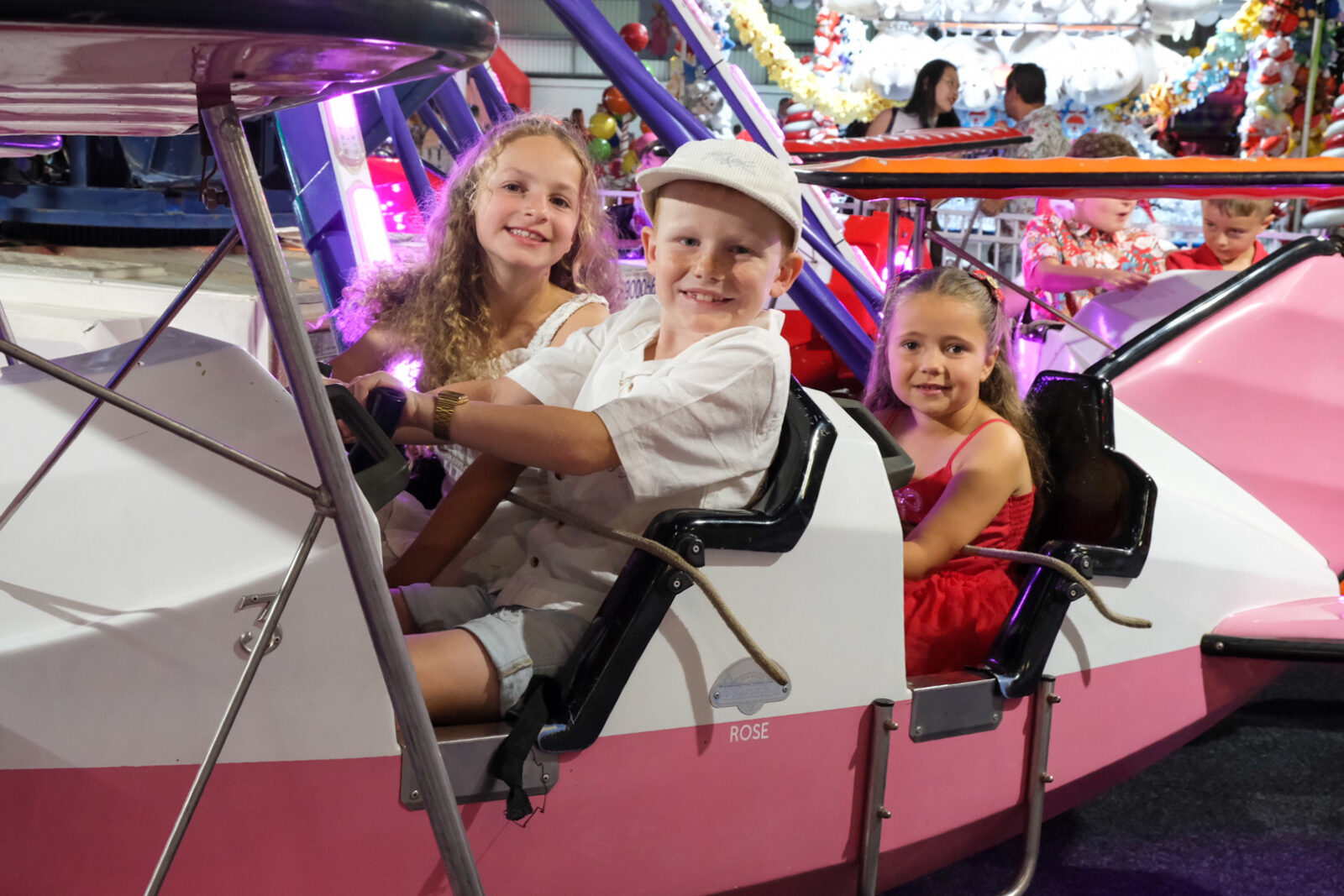 Between rides we stop at all the shiny selfie spots. The giant Christmas tree is still a highlight, and the sparkly displays make it easy to forget you are in a pavilion in Wayville rather than the North Pole.