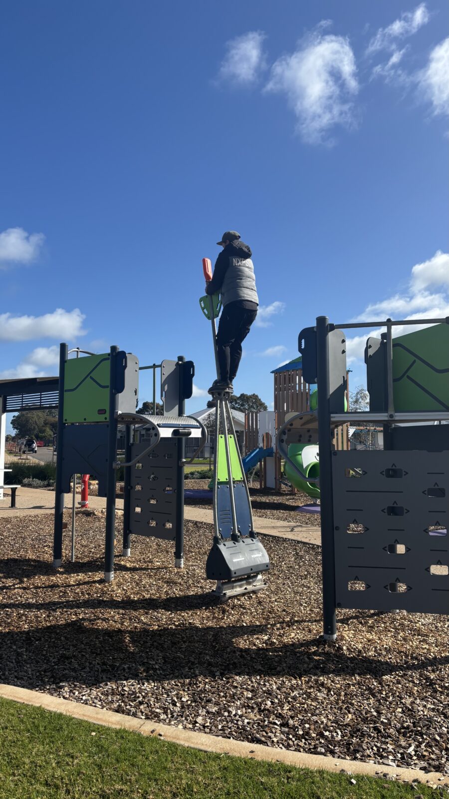 While the playground is suited to younger children, the cliff rider is definitely aimed for older kids who love taking a risk and are comfortable with heights. We recently visited this playground and it took us a few turns to get the hang of pushing off. Once we had it, is actually quite a fun and easy ride. We also were able to support our younger children so that they didn’t miss out by holding and moving the pole for them.