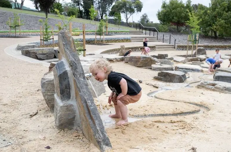 The Tusmore Park Wading Pool is fast becoming a favourite spot for visitors to cool down. The design features a fully fenced and shaded wading pool, lawned areas for picnics, a new creek style section, tiered seating and water play equipment for plenty of splashing and playing during the summer months.