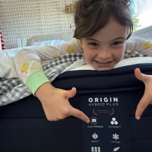 All she wanted for her birthday was a ‘big girls bed’ Because we are so happy with her big sister’s Origin Mattress, we went straight for that again and this time chose the newest model the Origin Hybrid Plus Mattress. Honestly, it’s a dream. 29cm high and made from multiple premium layers that combine plush comfort with solid ergonomic support working together to create the comfiest sleep ever. Get $25 off with the code kidsinadelaide25off2110 (valid until 21 January 2026)www.originmattress.com.au The removable and washable pillowtop cover is made from silky-soft TENCEL™ fabric, which feels amazing to lie on. It’s breathable, hypoallergenic, machine-washable, and dust-mite resistant. As a parent of kids with eczema, I know the nightly struggle of keeping them cool and comfortable. Origin’s breathable, hypoallergenic materials make a big difference, helping reduce irritation so they can sleep (and I can too!) One of the standout features is the dual-firmness comfort layer. You can flip the mattress to choose between Medium-Firm or Firm, making it easy to adjust as your child grows. Then we get into the dream team of mattress components.The natural wool and plush AirSoft™ fibres to keep her temperature just right all year round.Graphite foam draws away heat…